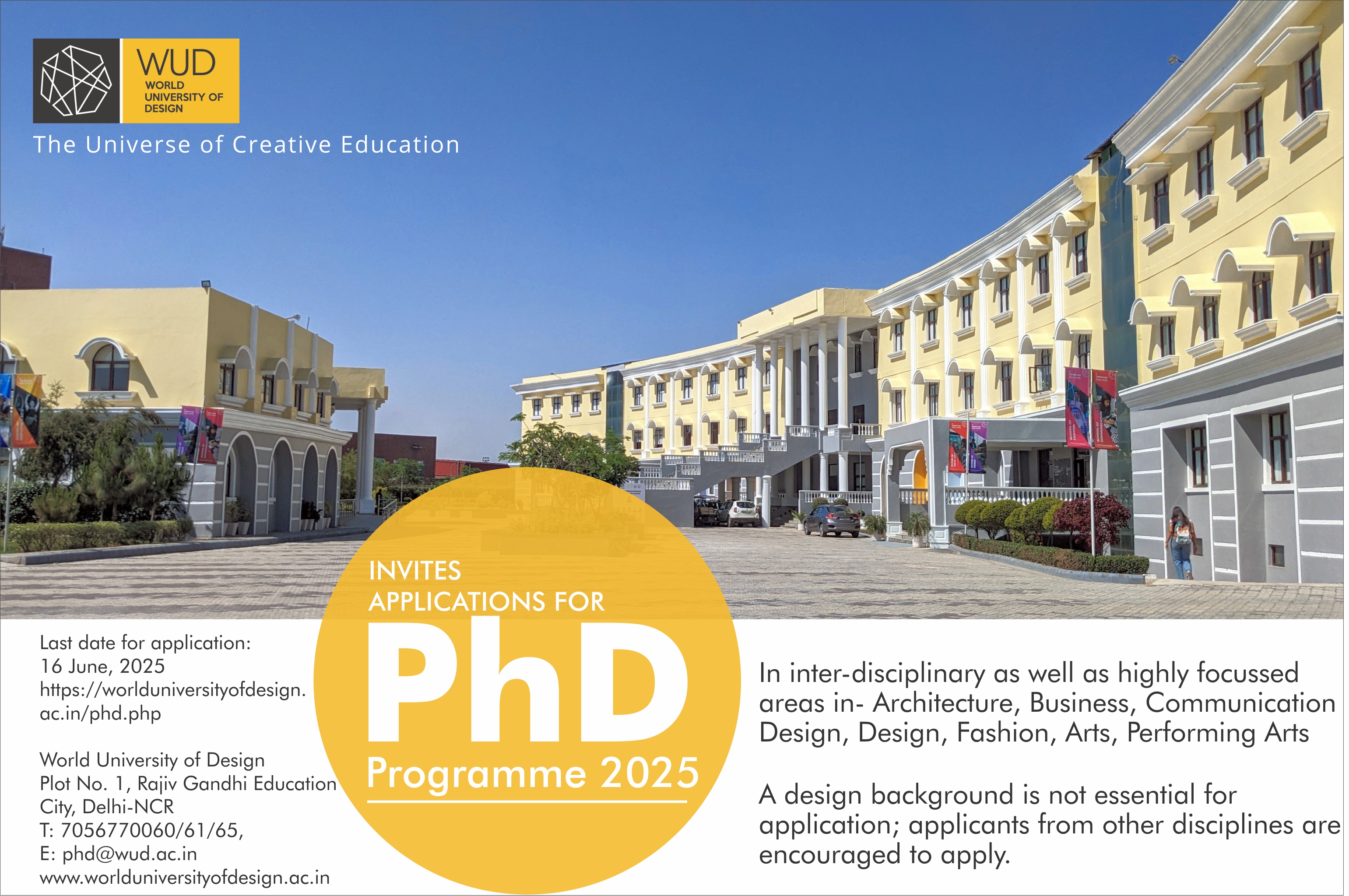 Interested candidates would send in an application along with required documents to the Chair of the PhD program at phd@wud.ac.in. The documentation required consists of –